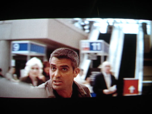 Джордж Клуни и Николь Кидман в погоне за югославским террористом, который высаживается в аэропорту Кеннеди в Нью-Йорке. Сойдя эскалатора Клуни тревогой смотрит вокруг и позади него являются номера боксов 9 и 11.